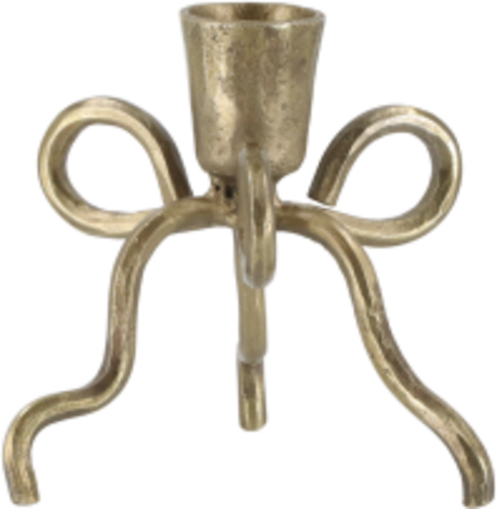 This iron candle holder with an antique brass look features a charming design resembling a bow. A stylish and decorative accessory that creates a warm, festive ambience in your home both when placed solo and in combination with other sizes.