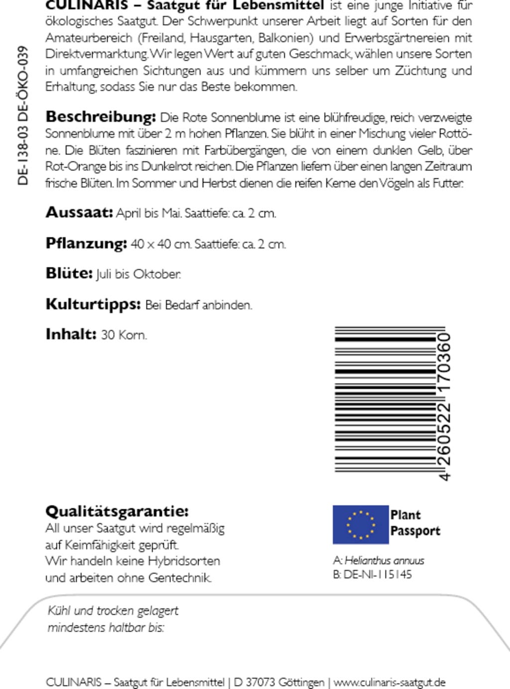 | Manufacturer: | Culinaris - Saatgut für Lebensmittel, Thiegasse 5, 37124, Rosdorf, Germany, info@culinaris-saatgut.de, culinaris-saatgut.de |