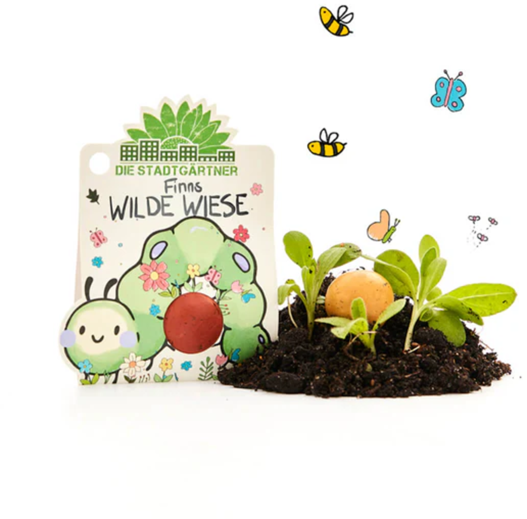 The handmade "Finn’s Wild Meadow" seed marble contains wildflower seeds and brings nature's beautiful colours to your garden. This seed marble doesn’t just look cute; it will grow into a colourful, wild meadow that attracts bees and butterflies.