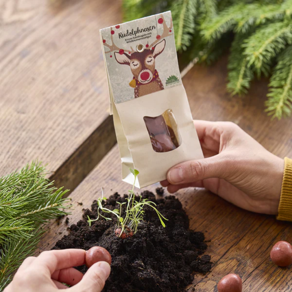 These red seed marbles are reminiscent of Rudolph the Reindeer’s famous nose and bring a touch of spring anticipation to the Christmas season. The balls contain a blend of 19 different wildflower seeds that create a colourful meadow in your garden. Perfect for delighting bees and butterflies and transforming your garden into a vibrant paradise.