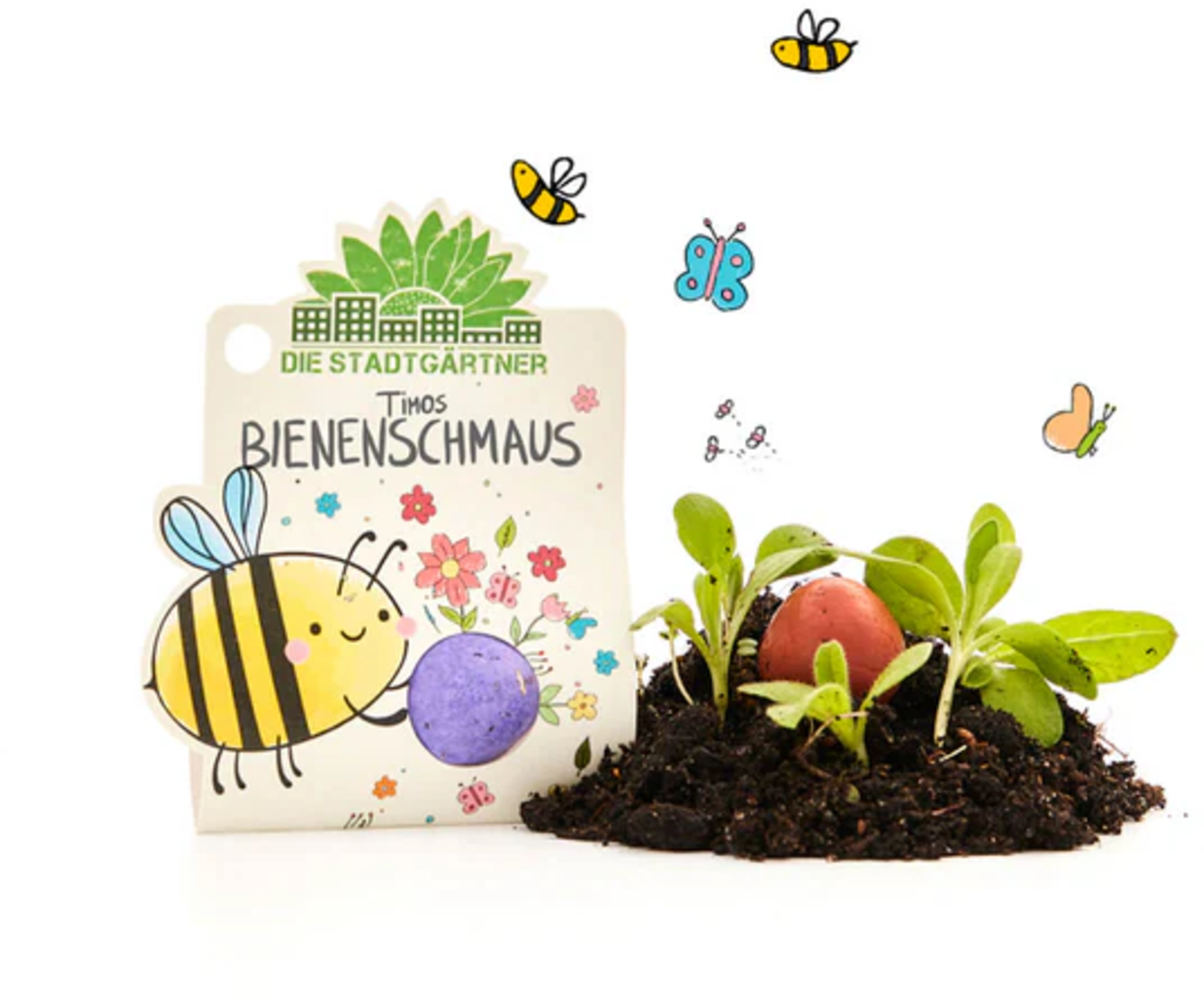 The handmade Timo’s Bee Feast seed marble contains wildflower seeds and brings the colours of nature to your garden. This seed marble doesn’t just look cute; it creates a colourful wild meadow that attracts bees and butterflies.