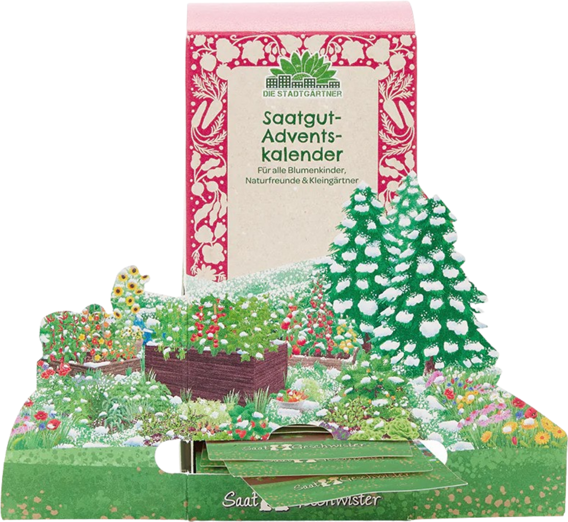 Look forward to a truly special Advent: this decorative fold-out Advent calendar hides 24 seed surprises. From colourful flowers and aromatic herbs to crunchy vegetables and fresh salads - this calendar offers a diverse mix that enriches every gardening project.