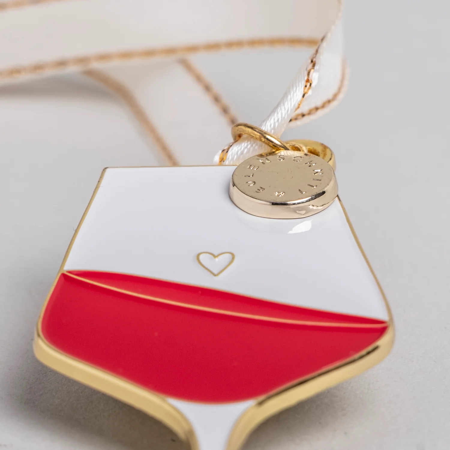 Bring festive cosiness to your Christmas tree with this lovingly designed tree ornament in the shape of a wine glass. The red wine glass features charming white and gold details and makes for a special eye-catcher. Thanks to the pre-attached ribbon, the pendant can be hung immediately.