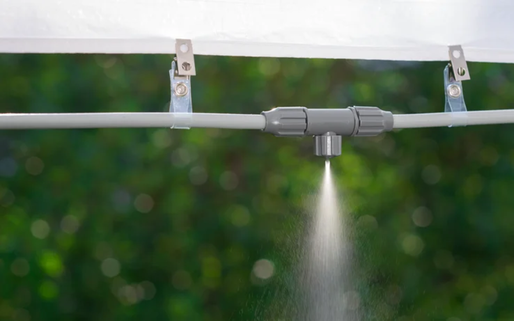 Automatic & flexible system with mist nozzles for cooling refreshment on hot days