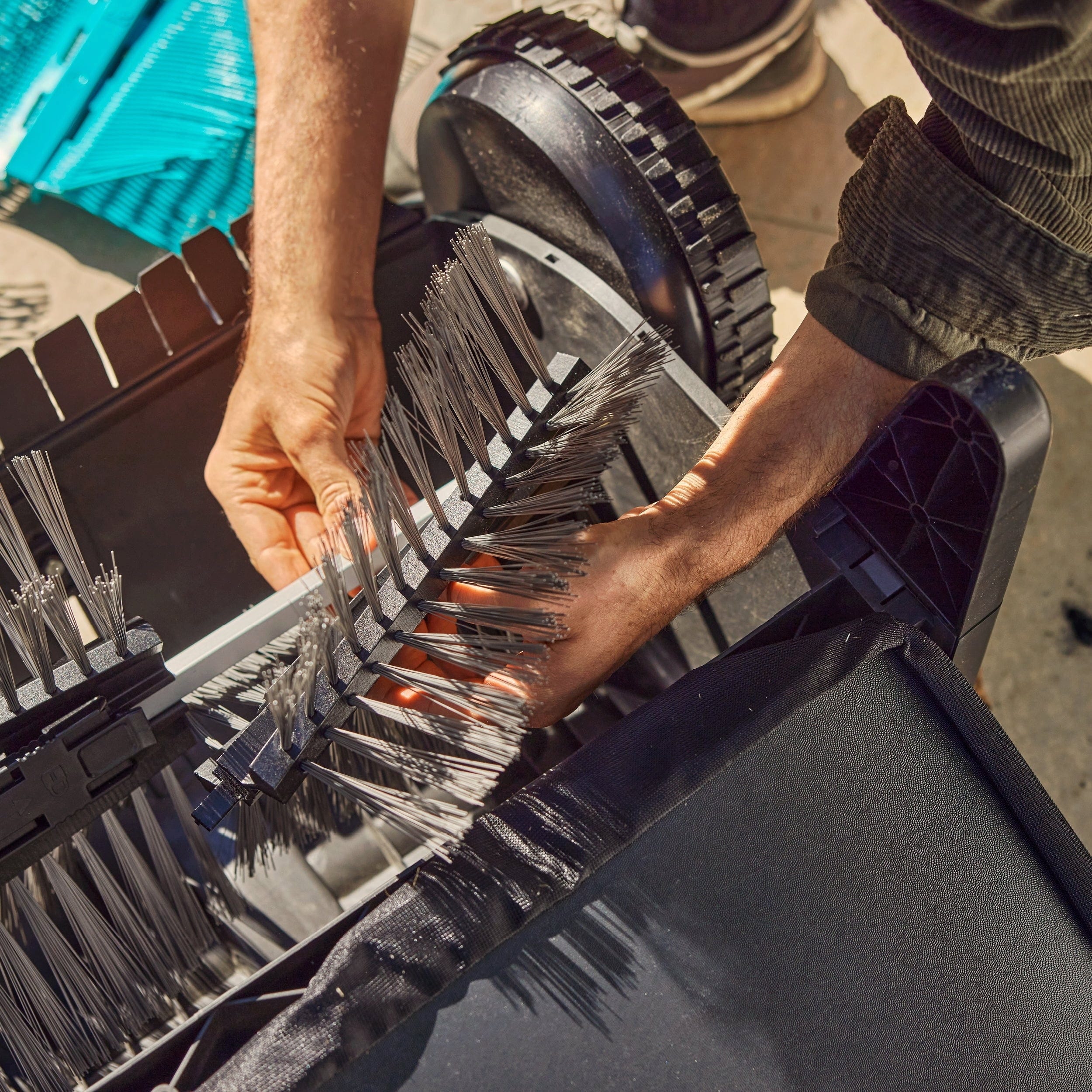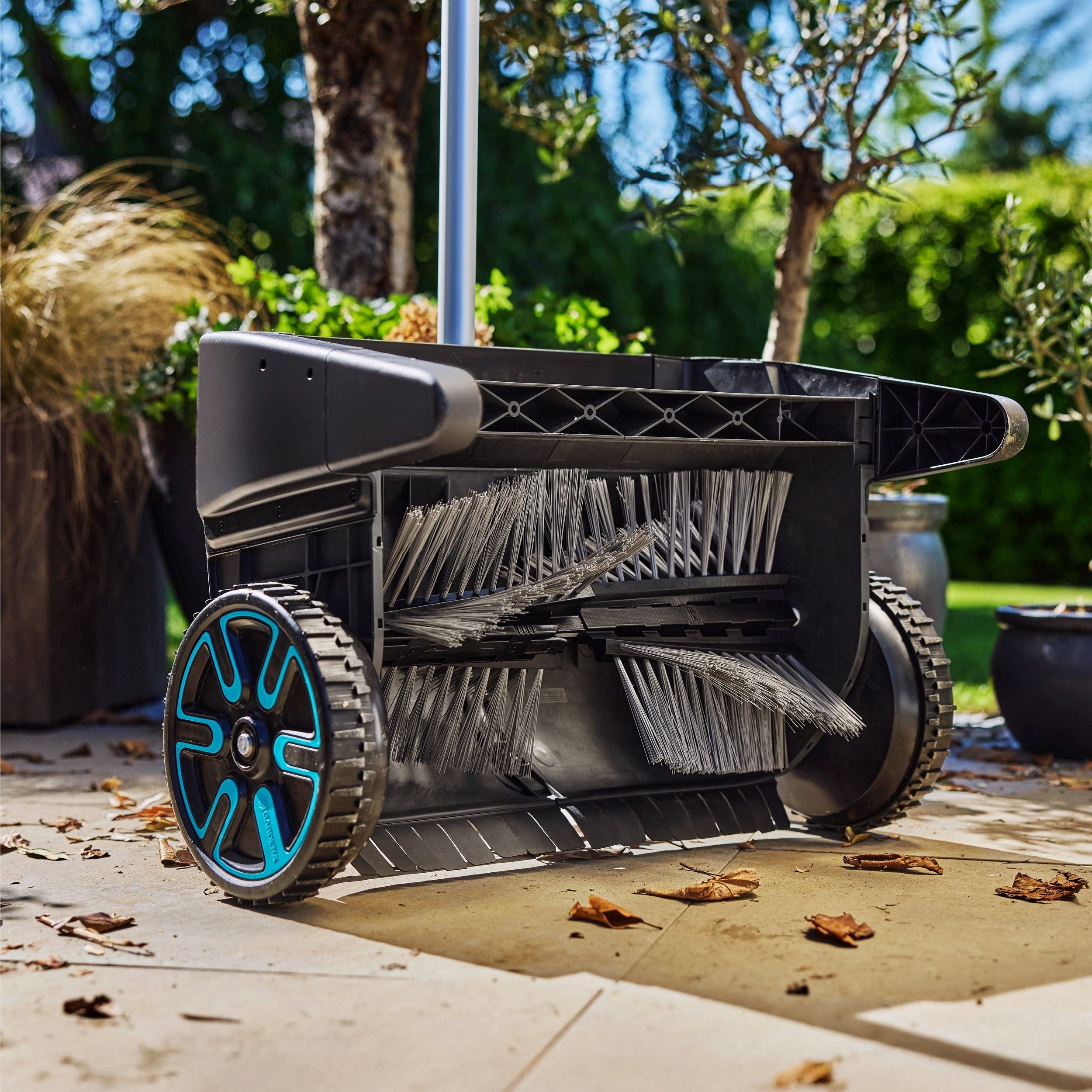 Thanks to the tool-free locking mechanism, you can swap the components in seconds, allowing you to transition from the lawn to stone flooring without interruption. Once mounted, everything remains securely in place, turning large cleaning tasks into a quick and rewarding success!