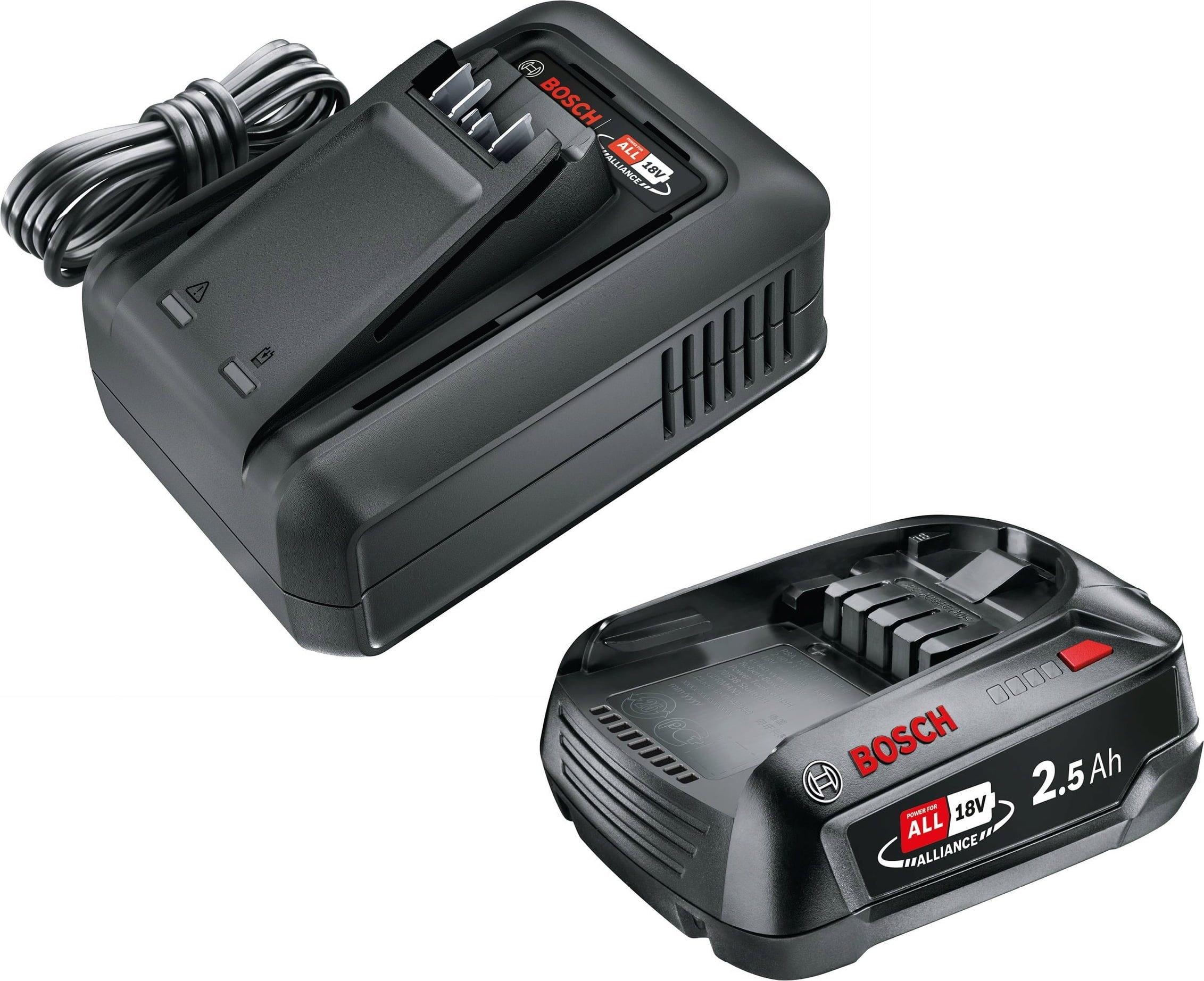 With this starter kit, you get the perfect foundation for your entire range of tools in the home and garden. The set combines a lightweight, handy 2.5 Ah battery with a high-performance quick charger that offers a massive 47% more power than its predecessor. As part of the POWER FOR ALL ALLIANCE, this battery is your universal key to over 150 devices from more than 10 top brands - one system for everything, from grass trimmers to household appliances.
