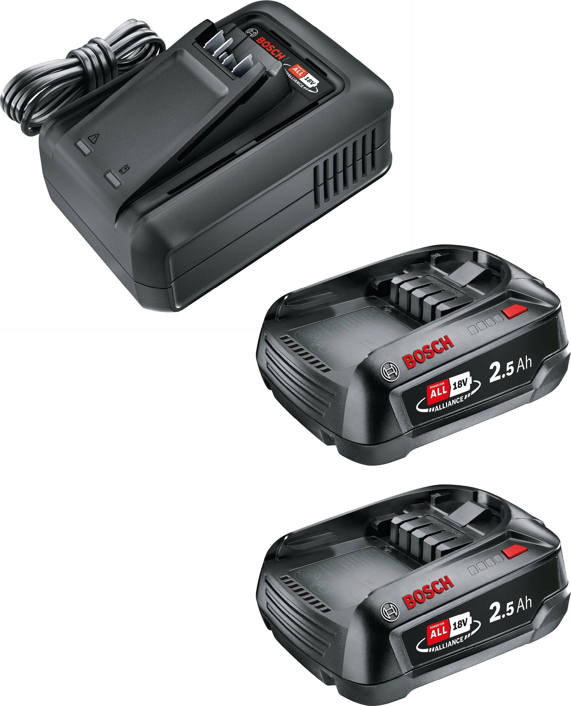 This Starter Kit provides you with two compact 2.5 Ah batteries and a high-performance quick charger that boasts 47% more power than its predecessor. While you trim the lawn or cut the hedge with one battery, the second one is already recharging - allowing you to continue working without interruption.