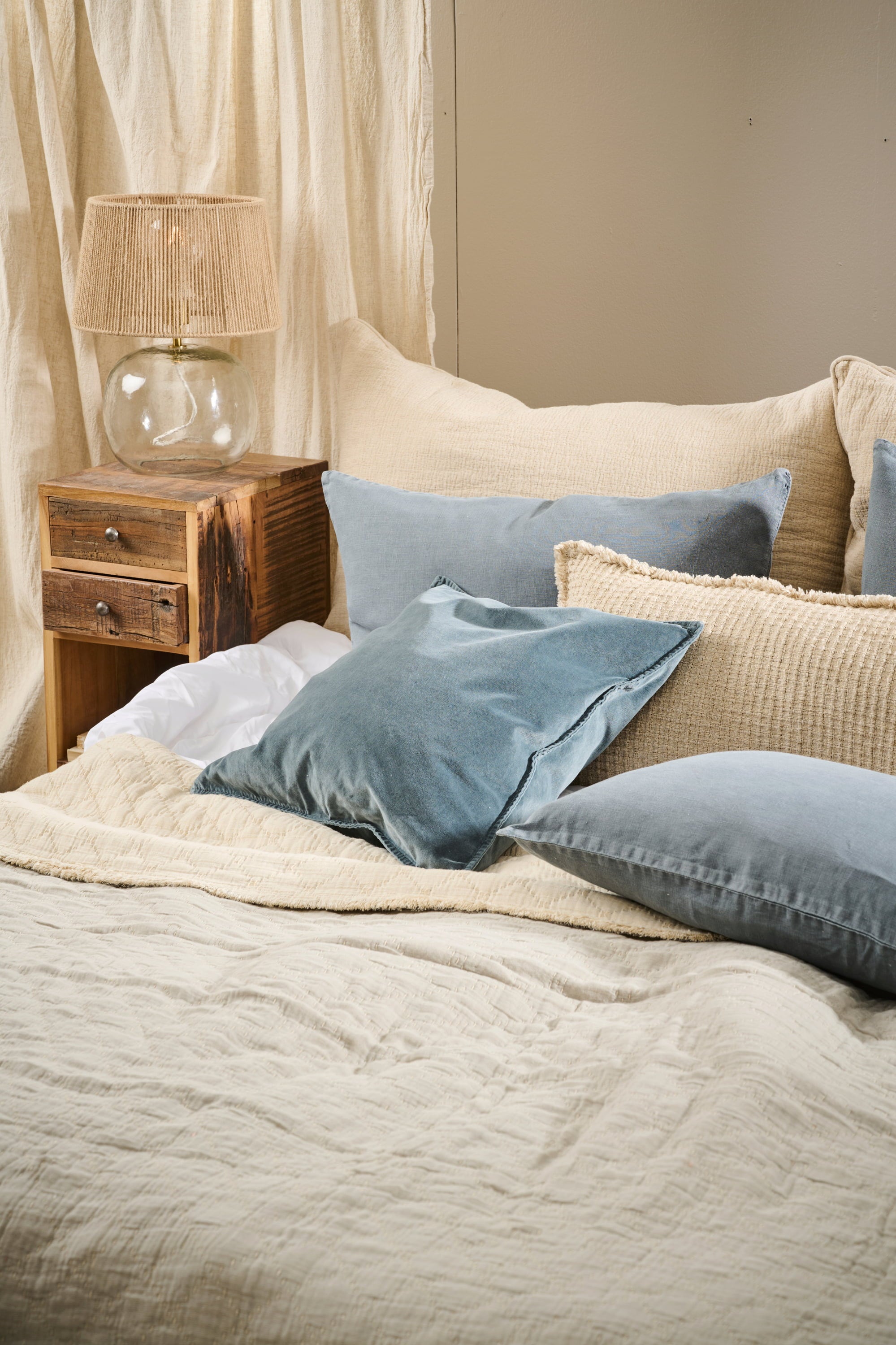 IB Laursen Bedspread with Chequered Stitching, Light Blue / Off White