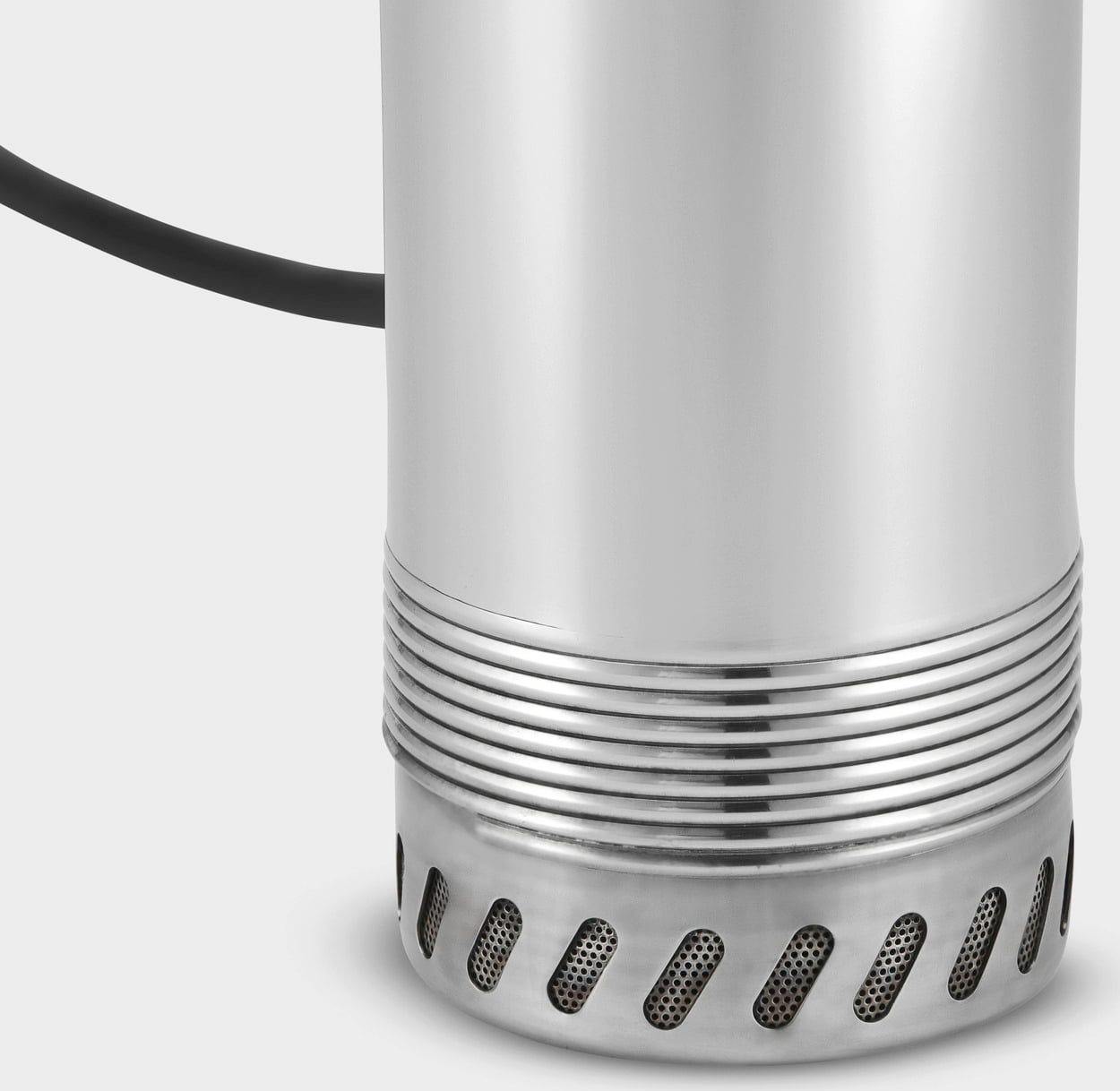 As a deep well pump for garden irrigation, it can provide well water for automatic watering systems, drip irrigation, or lawn sprinklers. Furthermore, the pump can extract well water for technical applications, such as supplying heat pumps or for domestic water management. When used in conjunction with a pressure switch, this borehole pump for domestic water supply is ideal for using service water in the home. The robust stainless steel housing, an integrated pre-filter, and the check valve protect the pump during operation. The spacer foot simplifies installation within the well and protects the water intake from debris. The 30 m cable and included fastening rope ensure a secure installation in deeper boreholes.
