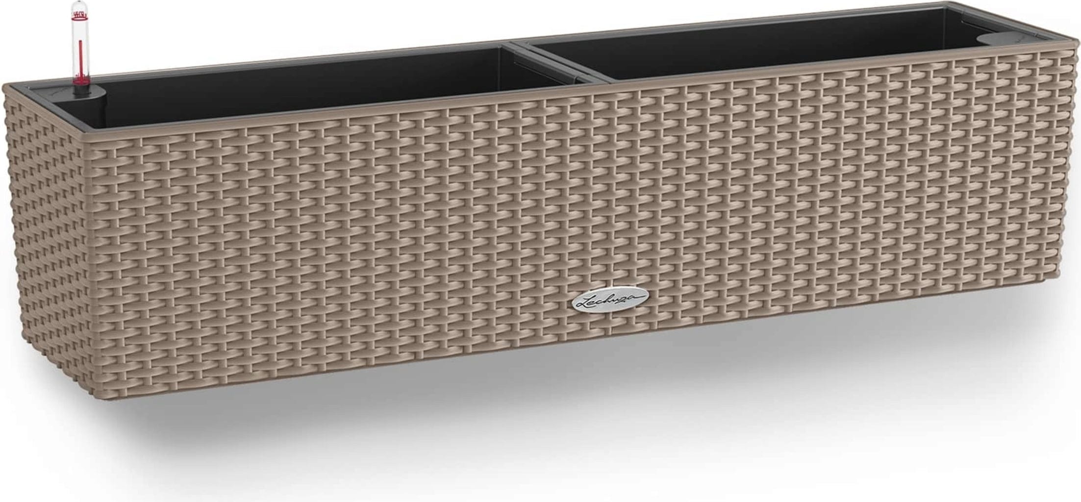 The balcony box BALCONERA by LECHUZA does not let plants wilt even in the heat of the day. Thanks to the large water reservoirs (5 litres) they get enough water. Place the inserts comfortably on the floor or table and then insert them into the window boxes. The plant inserts are interchangeable.