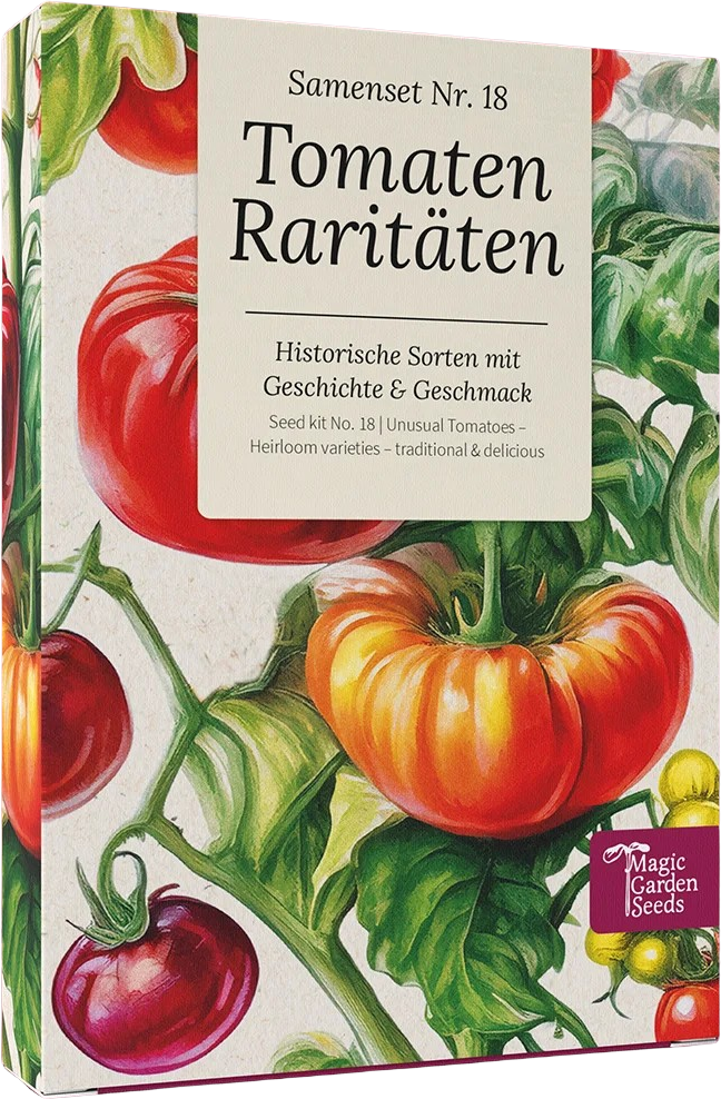 This seed set is a must-have for tomato lovers! It includes seeds for 9 heirloom tomato varieties, each with a unique character and taste.