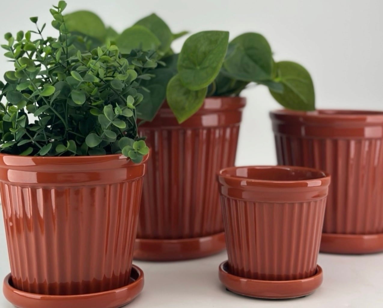 The "Terra Stripe" planter adds a natural touch to your indoor area. Each pot is crafted from stoneware and features a unique pattern created during the specialised production process – meaning no two pieces are alike. Its warm "Burnt Terra" hue beautifully highlights your plants and blends effortlessly into any interior style.