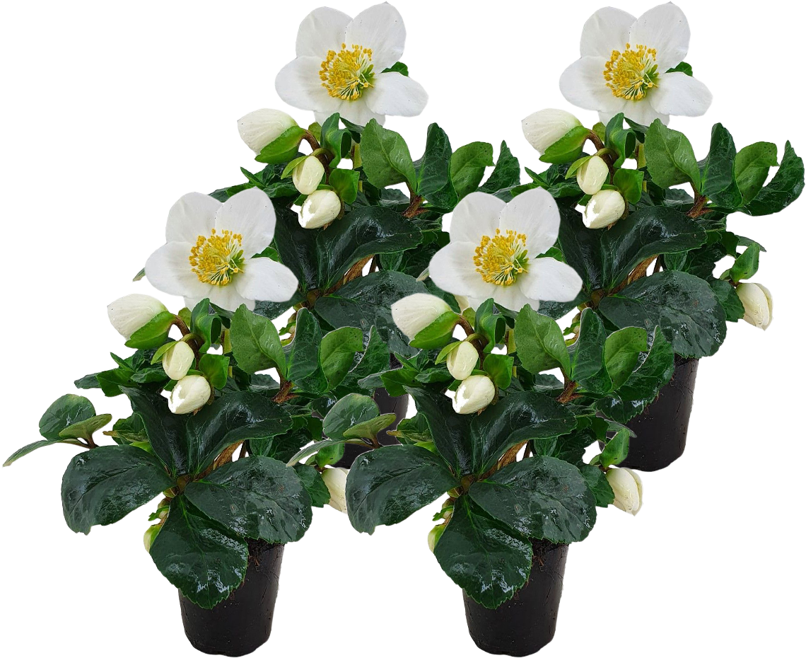 This Christmas Rose variety (Helleborus niger) captivates with its elegant white blossoms that adds colour to the winter landscape. These hardy, perennial plants are easy to care for and thrive in garden beds as well as pots and containers. A true winter highlight in the garden or on the balcony.