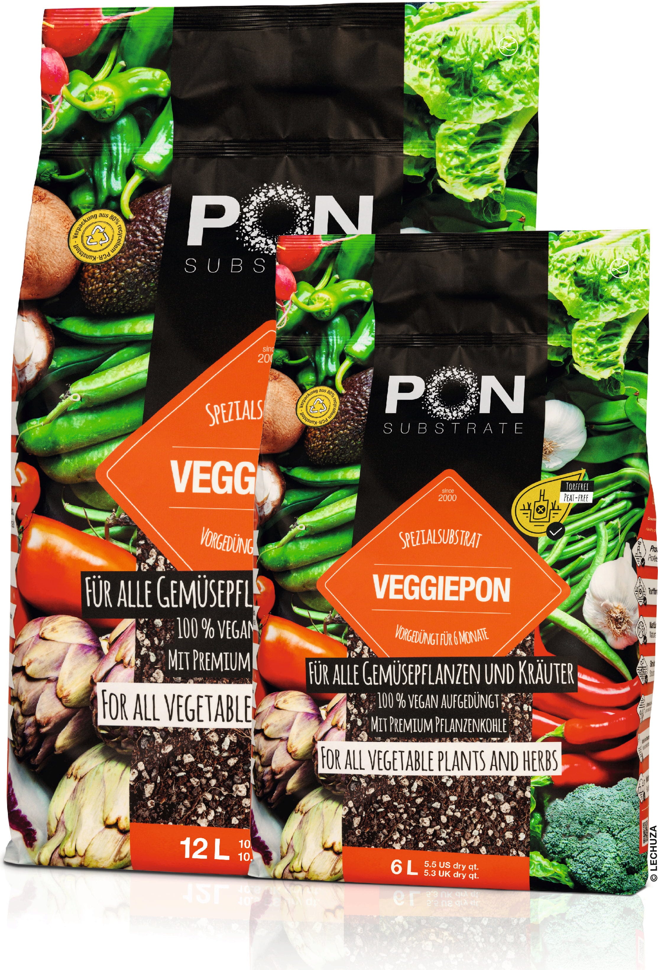 Veggiepon combines practical performance with ecological standards. The organic mineral substrate ensures effective drainage and helps prevent root rot, even during periods of heavy summer rain. With the vegan, slow-release fertiliser already included, plants are well nourished from the very beginning.