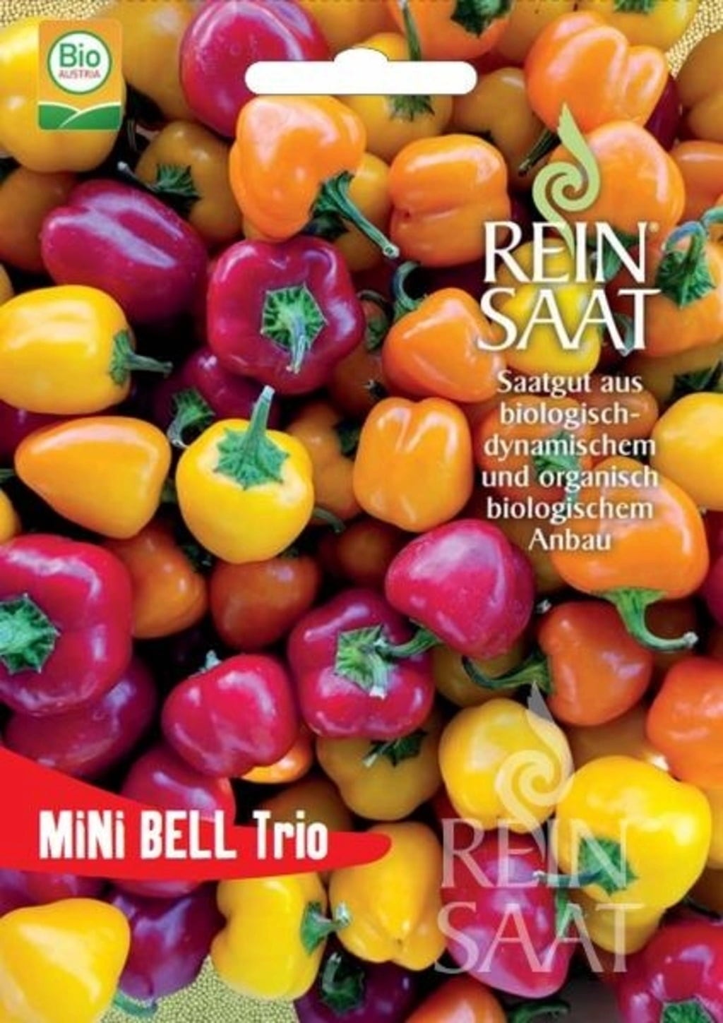 Mini Bell Trio produces an abundance of aromatic mini peppers in vibrant colours. These robust plants grow strong and bushy, are easy to care for, and are ideal for the garden, balcony, or patio. Perfect for enjoying fresh, in a salad or as a snack.