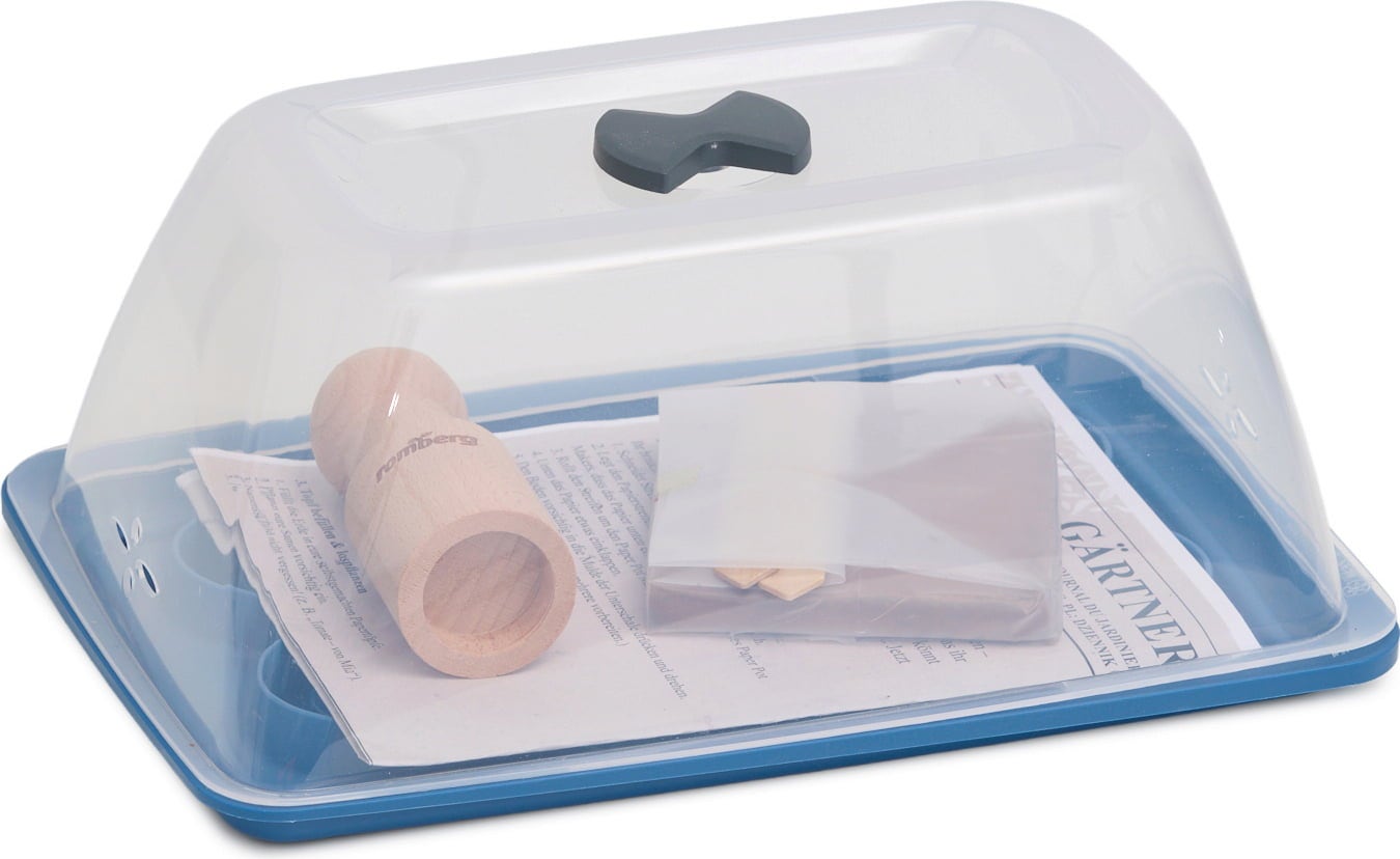 Sowing seeds, and observing as they germinate and grow into little seedlings and then plants - with Romberg's complete grow kit, gardening becomes an exciting adventure for young children. The sustainable complete set is a playful way for children to learn about nature, plant growth and sustainability. It includes child-friendly accessories such as the tray with little depressions for grow pots and a wooden mould for making DIY grow pots out of old newspaper. A hands-on experience that encourages curious young minds to experiment and explore the natural world.