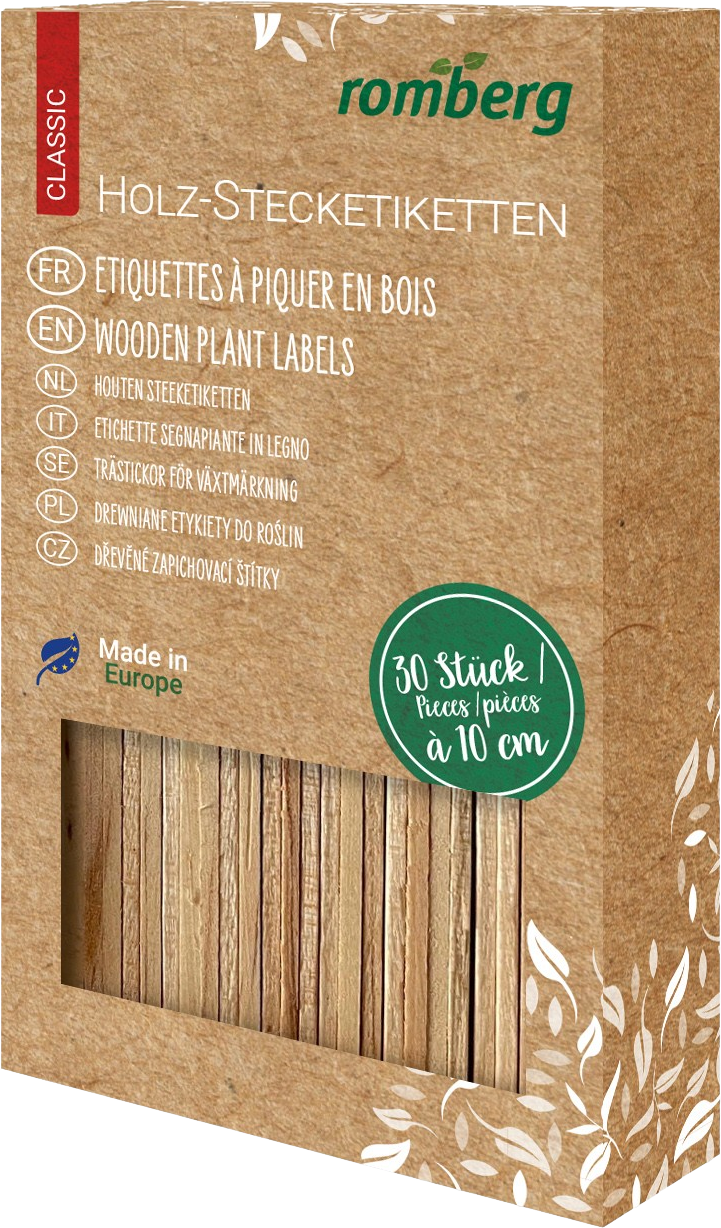 The Romberg wooden plants labels are an easy way to label your seeds and plants. The sturdy wooden sticks are sustainable, biodegradable and ideal for the garden, balcony or for indoor use. Whether you're growing herbs, vegetables or flowers, these eco-friendly labels will help you stay organised and keep track of what is growing and where. Perfect for keen gardeners who value sustainability!