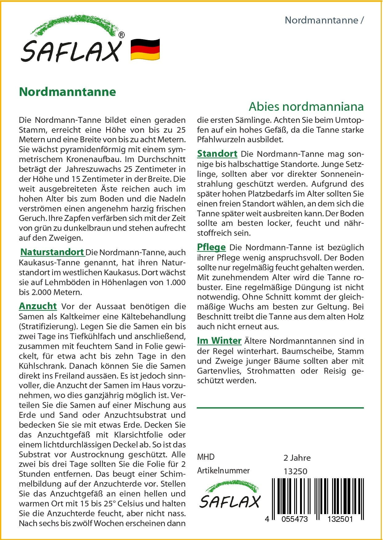 The Nordmann fir grows up to 25 m tall and 8 m wide. On average, it grows about 25 cm per year. Therefore, choose the location for planting it carefully right at the time of sowing.