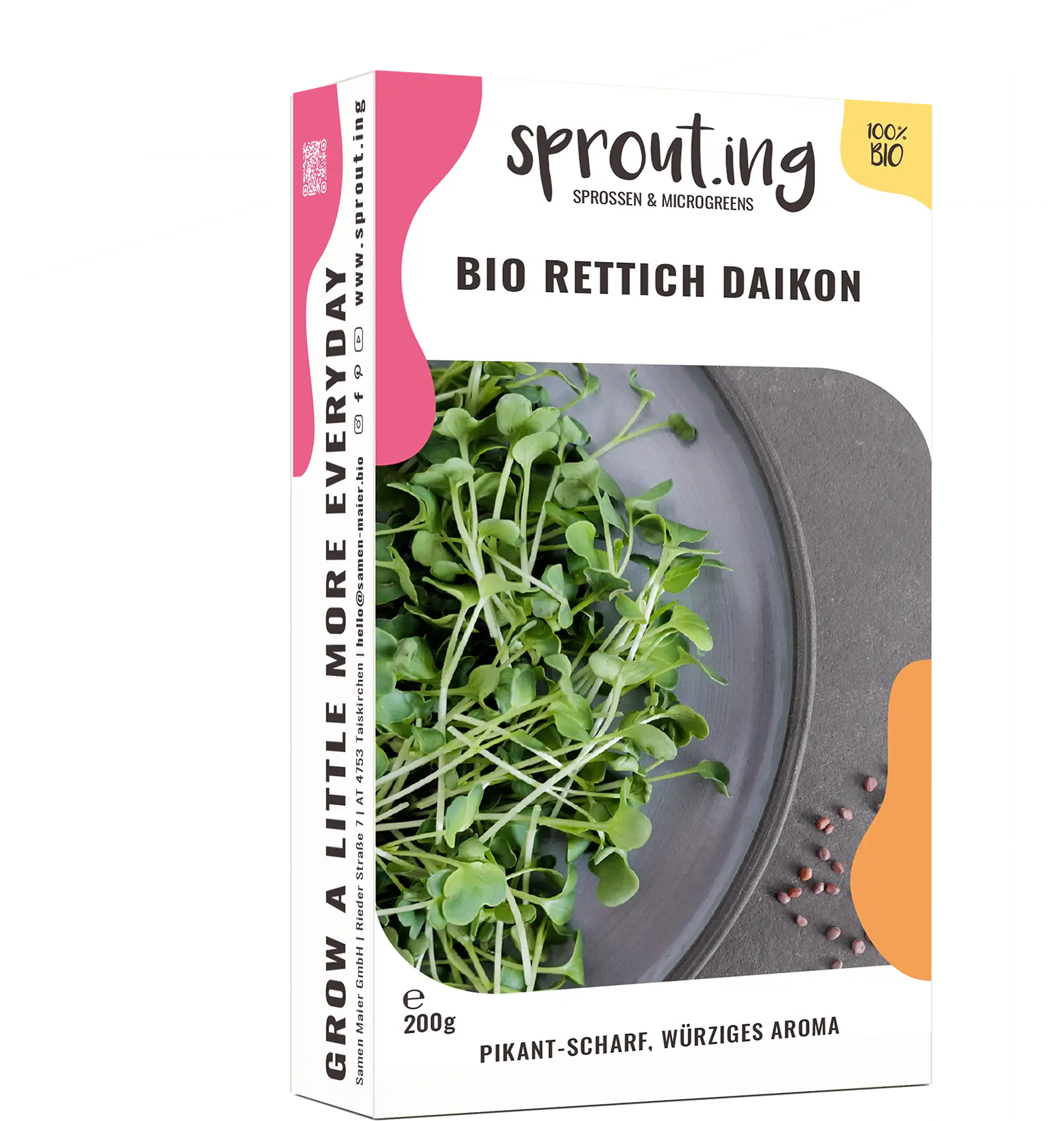 Your highlight at the table! As sprouts or microgreens, radishes can top off any dish and give it a special look. They bring crisp freshness with intense flavour and can be used for stir-fries, smoothies, salads, wraps and much more.